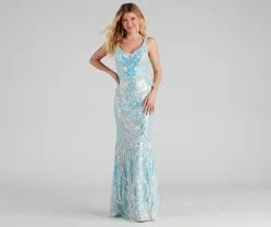 You deserve to sparkle! Have your shining moment at prom wearing the Sylvia formal sequin dress. She features a classy sleeveless plunge V-neck with a mesh insert and tank-style straps and a built-in padded bust. Showcase some skin in her low open-back design. Her fitted bodice leads to a floor-length mermaid silhouette that flatters every figure. The formal dress is composed of a sequin embroidered fabric with an inner lining and no stretch. Complete the look in a