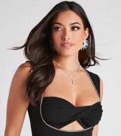 Take everyone’s breath away styling your look with these statement earrings featuring a half-moon design, baguette clear stones, and rhinestone accents on a post-back closure. Complete your dressy outfit in a