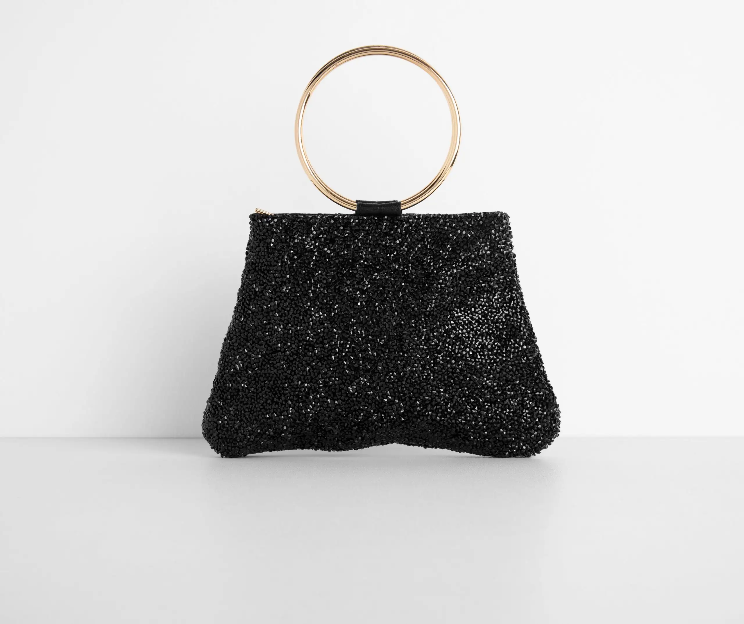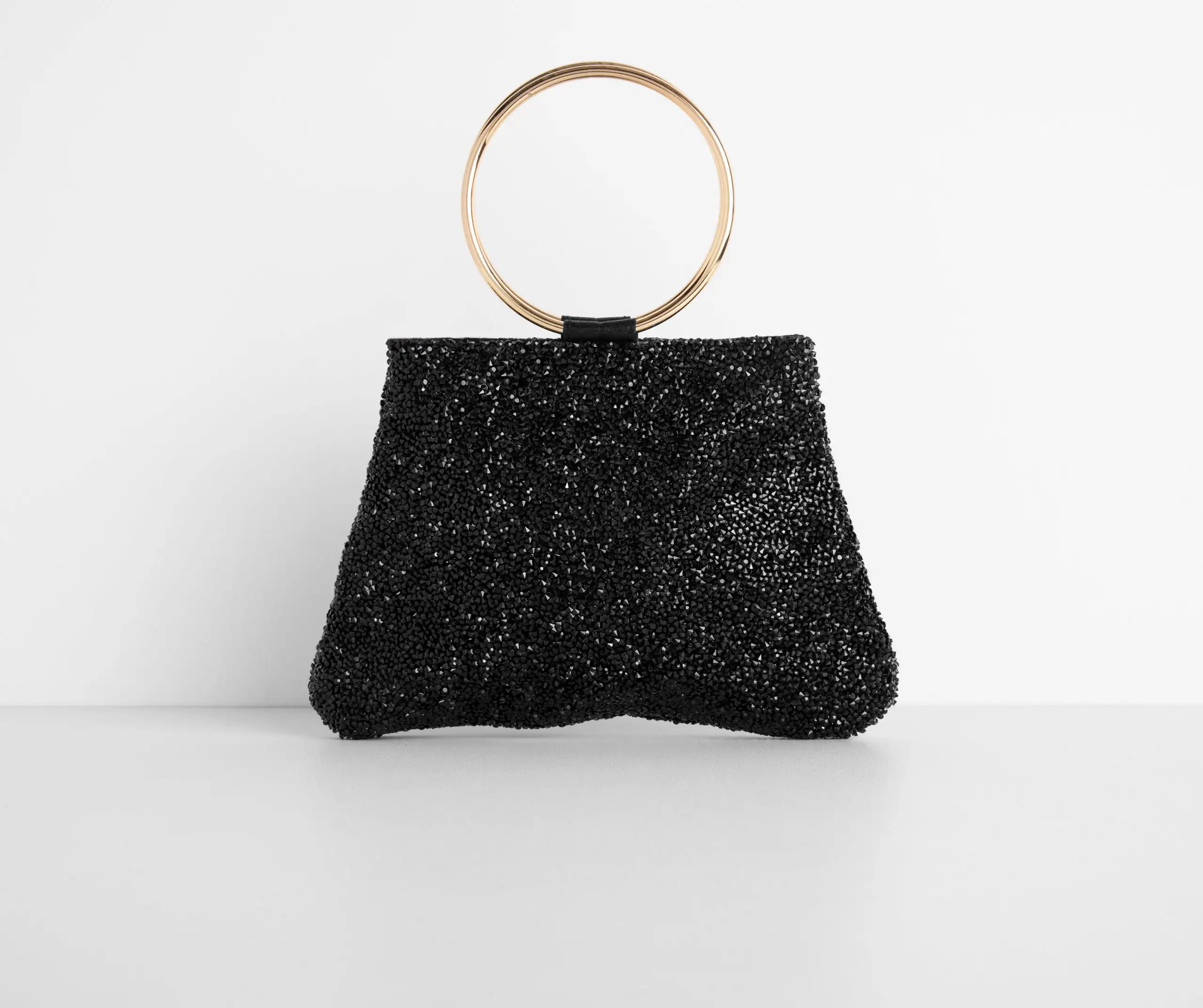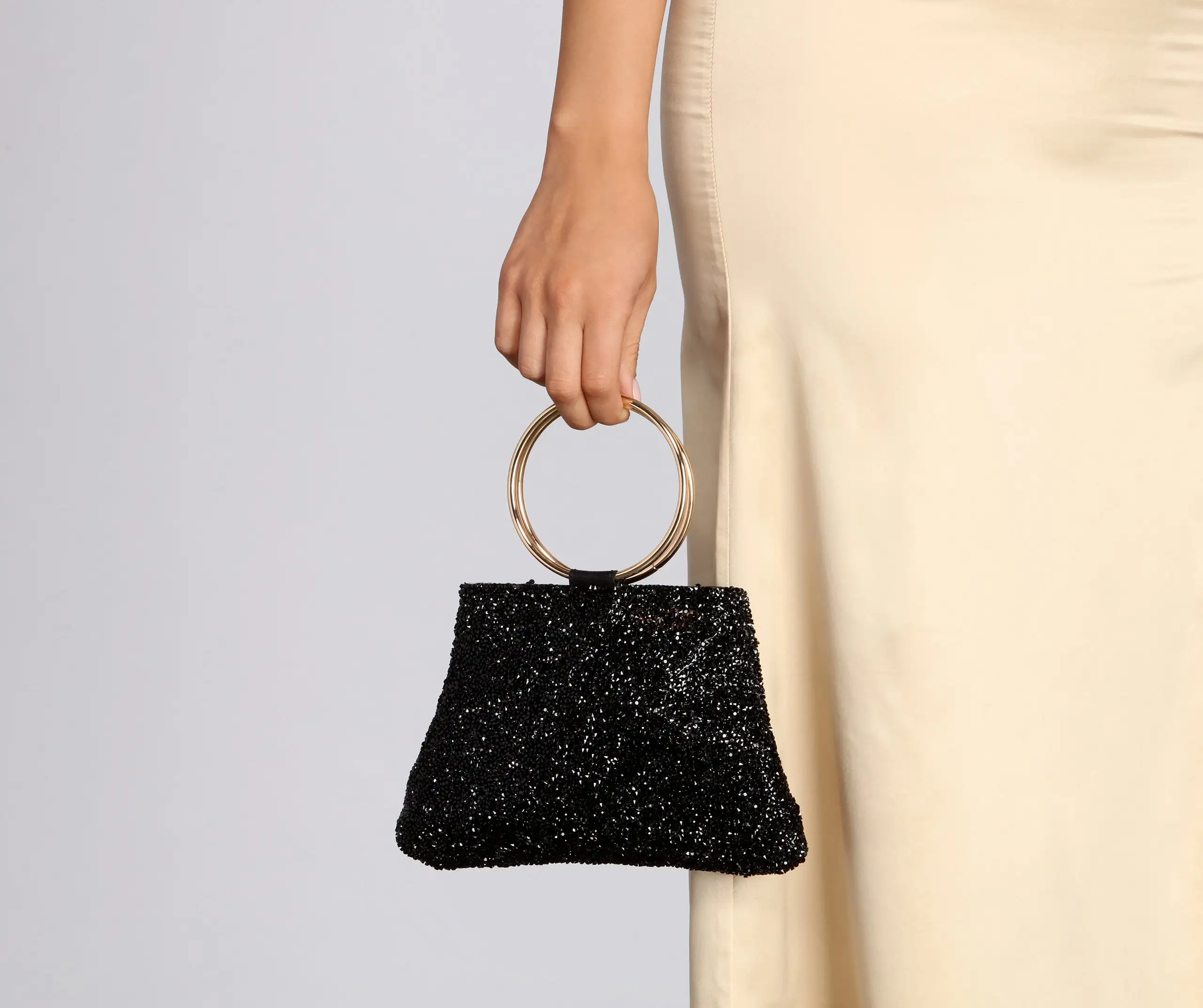 Tonight is the night to get a little fabulous! This hand held mini purse is designed with large o-ring handles, and a square shape with slanted edges. Purse has a zipper closure and a satin lining with a pocket on the inside. The outer shell of the purse is meticulously beaded completely with black rhinestones that shine bright when they catch the light!