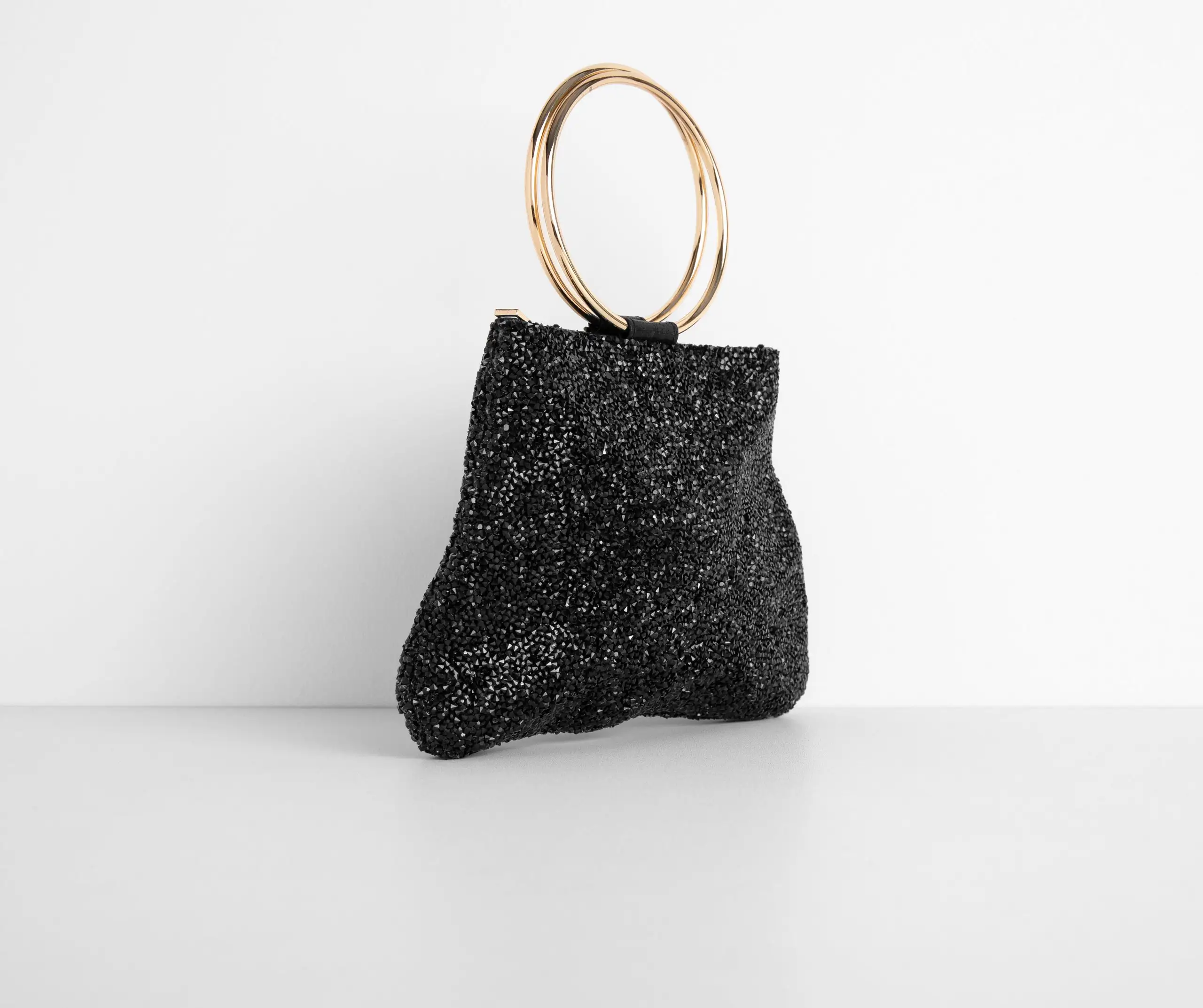 Tonight is the night to get a little fabulous! This hand held mini purse is designed with large o-ring handles, and a square shape with slanted edges. Purse has a zipper closure and a satin lining with a pocket on the inside. The outer shell of the purse is meticulously beaded completely with black rhinestones that shine bright when they catch the light!