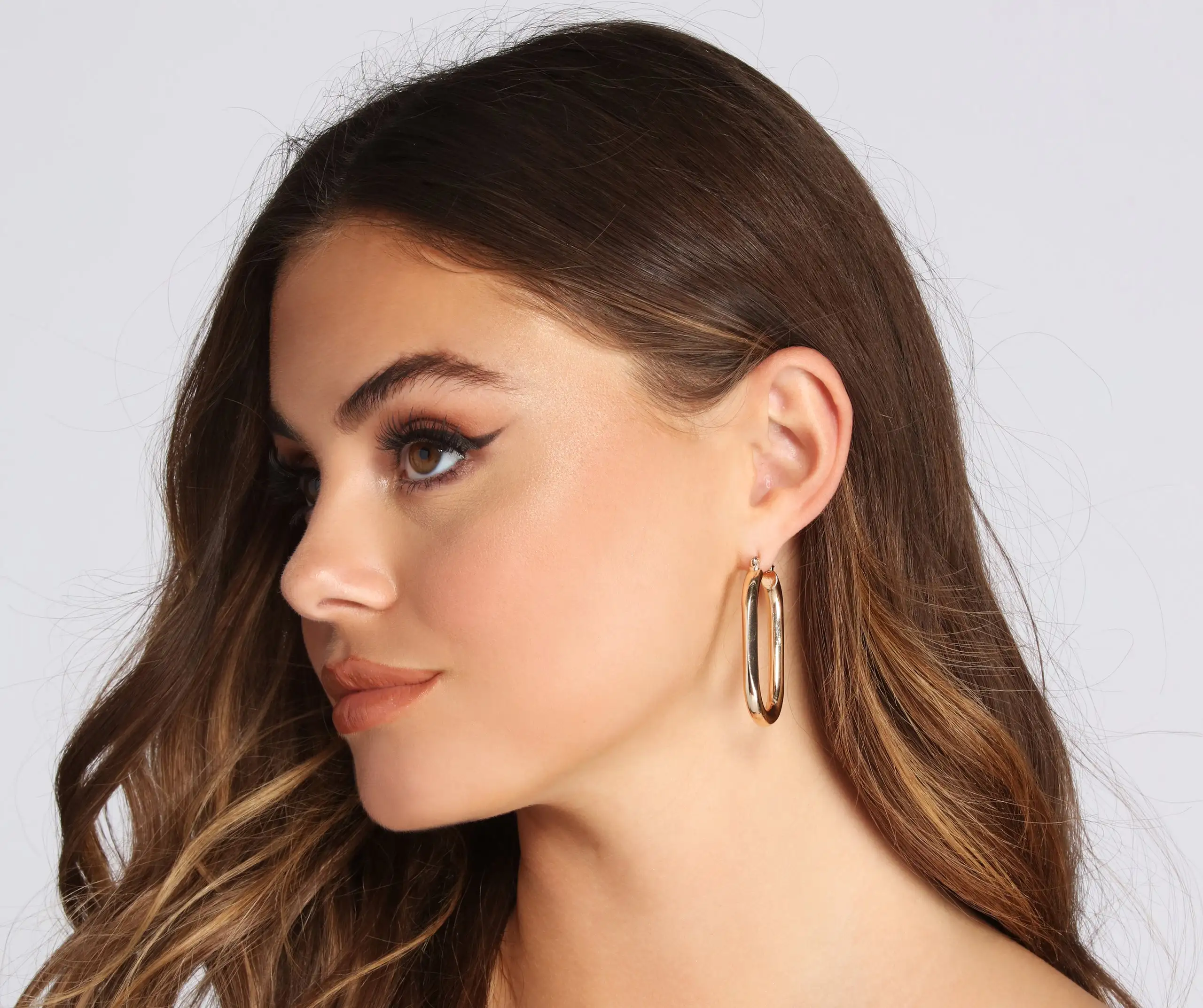 Add these trendy hoops to your jewelry collection! They feature a thick tube-like hoop in an oval shape with an omega closure.