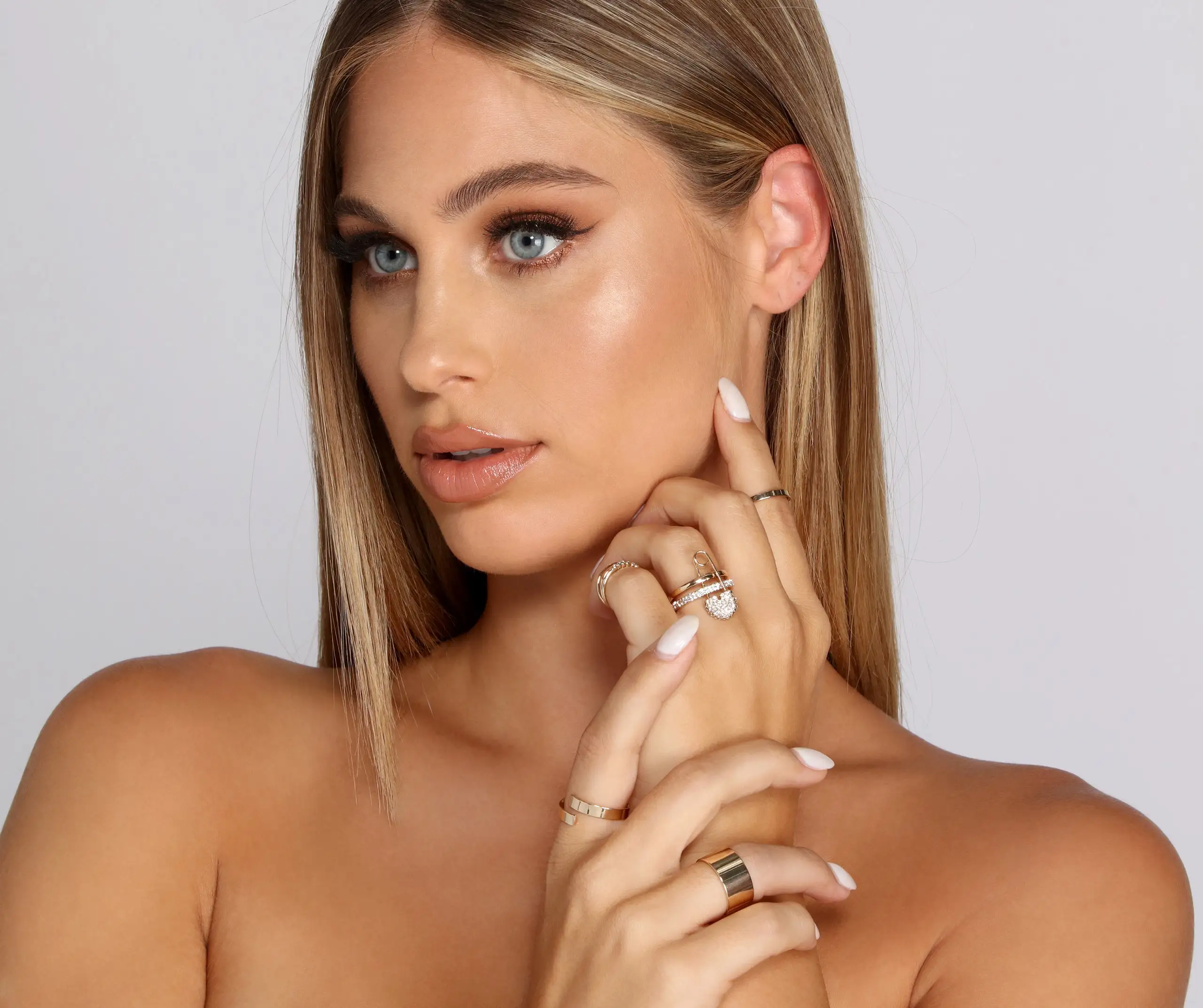 Don’t pick up the phone, girl – you’re too glam for him! Show your blinged-out side with this pack of 6 rings that’ll have you iced out and ready to go. The pack includes four simple bands, one rhinestone-encrusted band, and another ring with a crystal pin detail. Perfect for layering or wearing alone.